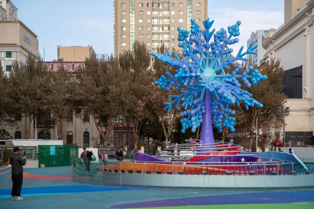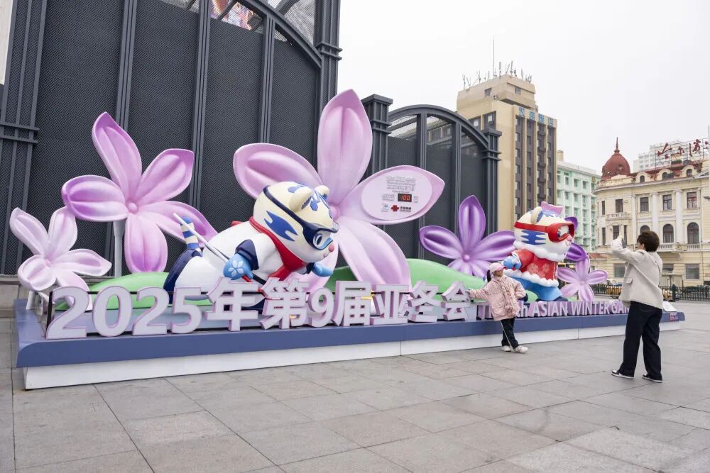 随着亚冬会脚步的临近,随处可见的亚冬会主题元素点缀城市街头