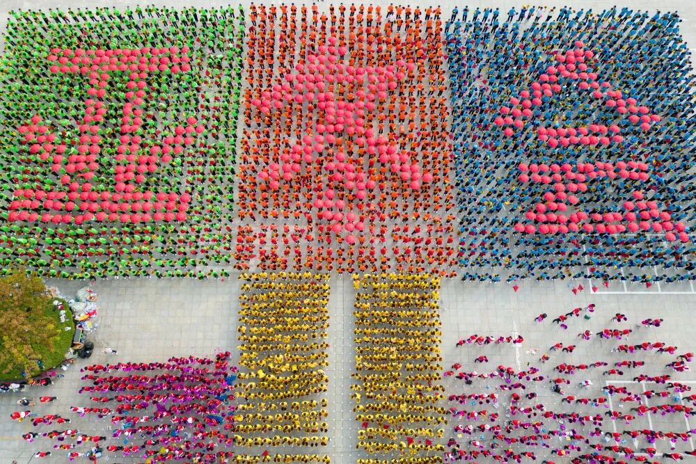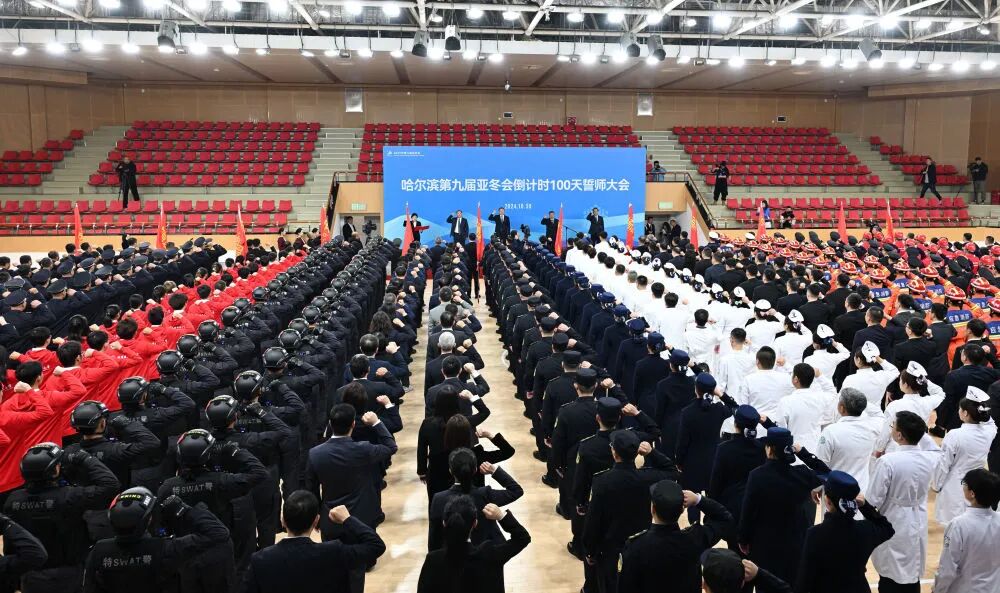 ↑10月30日拍摄的哈尔滨第九届亚冬会倒计时100天誓师大会现场 新华社记者 丁赫 摄