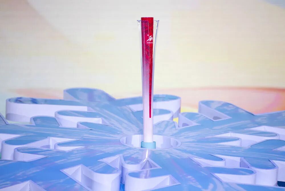 ↑10月30日在活动现场拍摄的亚冬会火炬。本届亚冬会火炬主题为“澎湃”,寓意着本届亚冬会将充满活力与激情 新华社记者 张涛 摄