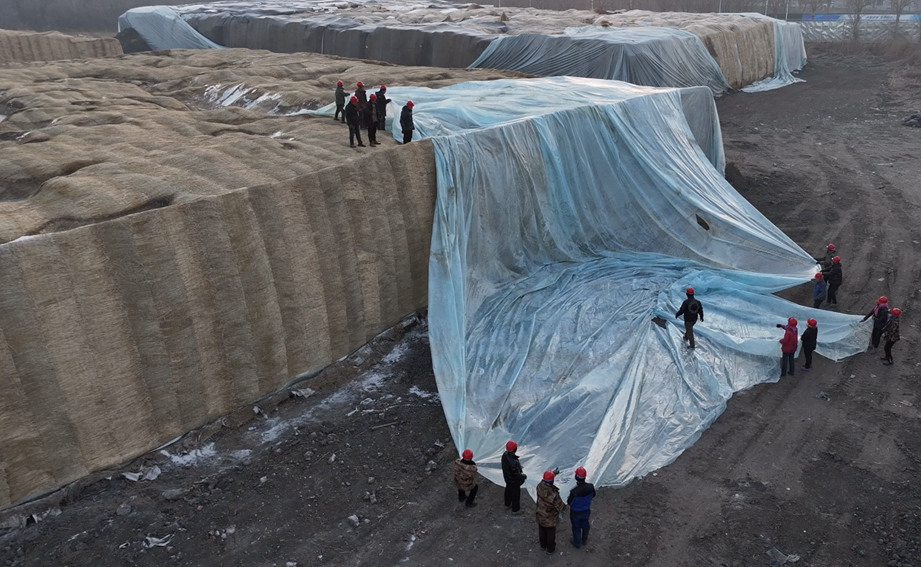 天还没亮,哈尔滨冰雪大世界存冰场的作业车辆和工人就已经忙碌起来,在夏秋季节起到保持低温、避光、隔热、密封等功能的“厚棉被”被层层揭开,一座座被精心保护了10个多月的“冰山”即将“重见天日”。