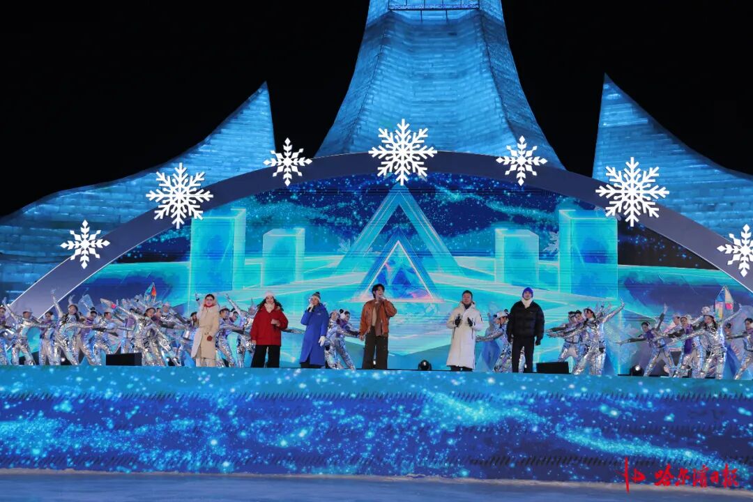 “把冰雪点燃,让梦想绽放;奇迹在招手,要赢得漂亮;极动的旋律,世界合唱……”开幕式现场,歌曲《把冰雪点燃》在著名歌唱家雷佳的演绎下,与哈尔滨这座冰雪运动之城的风采完美契合。亚冬会开幕式主题歌《点亮亚洲》首次亮相,让大家在冰雪节的开幕式上先听为快。演出结尾,来自哈尔滨的歌手王赫野偕哈尔滨籍冬奥冠军张虹、赵宏博,以及两位在哈尔滨读书的留学生代表一起唱响了本届冰雪节主题歌《悦动冰雪》,在为冰雪节开幕式画上圆满句号的同时,也为即将到来的哈尔滨亚冬会拟好了前言。