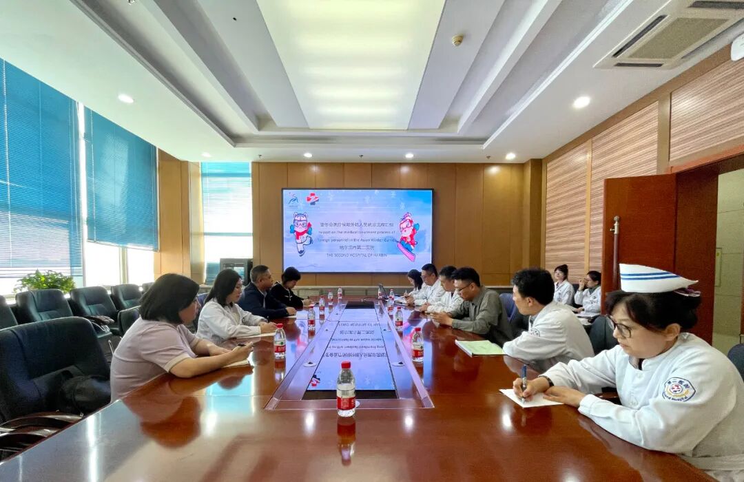 为切实做好哈尔滨2025年第九届亚冬会期间医疗卫生应急保障工作准备,加强亚冬会定点医院医疗服务水平,9月27日,哈尔滨市第二医院组织开展亚冬会外籍人员就诊医疗流程实战演练,院内各科室以训促学,以练为战,护航亚冬会。