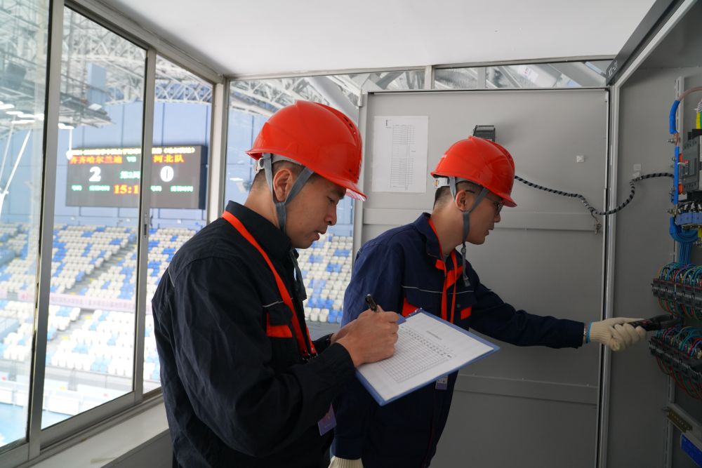 在哈尔滨亚冬会执委会确定的一家接待宾馆,国网哈尔滨供电公司亚冬会客户侧供电保障专班成员姜沅朋和工友正在开展隐患排查治理。当日,专班成员对酒店内的变压器、开关柜、电缆、应急电源及末端用电设备等进行了全面细致的检查。