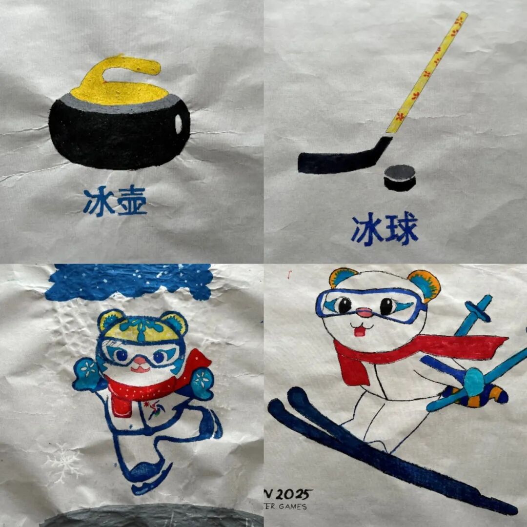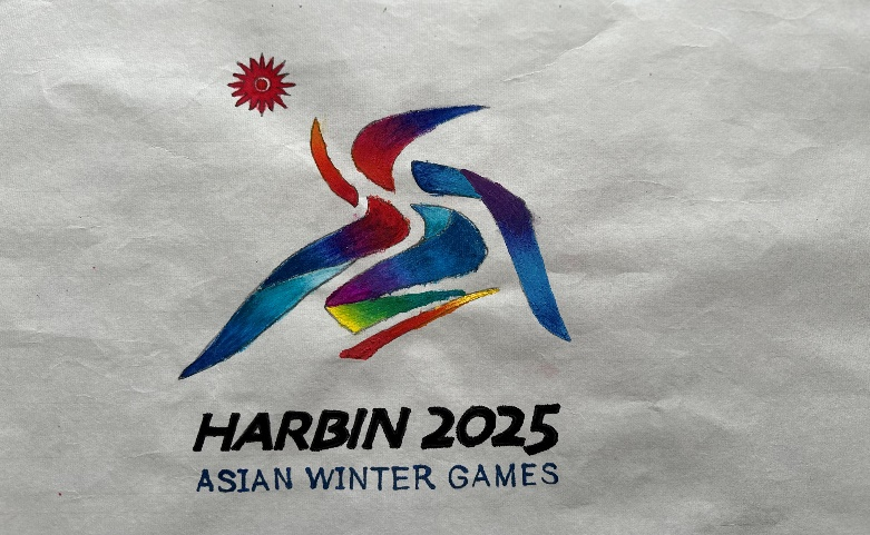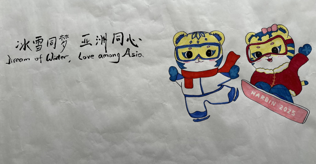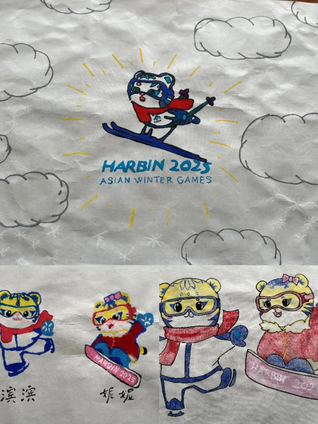 学生们精心绘制的哈尔滨2025年第九届亚洲冬季运动会会徽“超越”