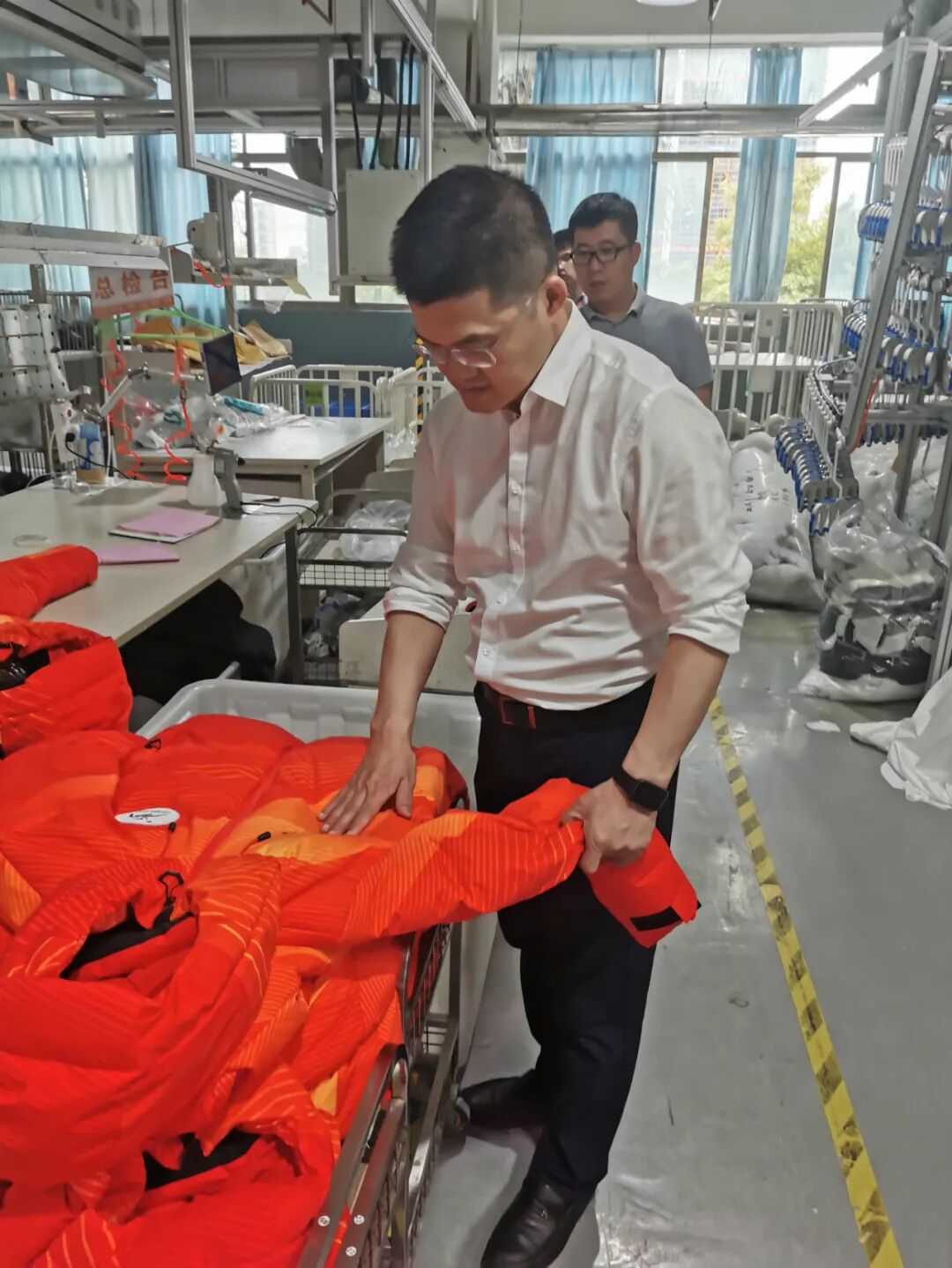 服饰专班人员分别来到制鞋车间、精品智能制衣车间和物流中心。在走访中对361°集团现代化、智能化、数字化的生产线给予充分肯定,并表示只有在智能化系统的生产协调下才能将产能效率大大提高,才能给予亚冬会运动服饰坚实的保障。面对筹办时间短、生产工期紧,服饰品类多等困难,加之绿色选材,科技含量高,抗极寒性等诸多要求,361°集团能够严格遵守交付节点,高度把控质量关,是对本次赛事筹备工作的最大支持。