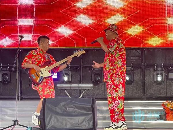 6月27日晚,“市民音乐嘉年华”的舞台迎来了顺时针乐队专场演出。舞台上的他们身着具有浓烈东北色彩的红色大花短T、短裤,以一曲《顺时针的歌》揭开了当晚演出的序幕。《不再犹豫》《真的爱你》《可能》《后来》《失恋》《无地自容》《不见不散》以及《光辉岁月+只要你过的比我好+红旗飘飘》《活着+唱支山歌给党听+万泉河水+军港之夜+我的祖国》歌曲联唱,多首时代流行金曲,释放出复古摩登的信号。“我怕我没有机会,跟你说一声再见……”随着顺时针乐队演唱的《再见》响起,引发全场大合唱,观众不由自主地随着乐声拍手,高举手机边录边唱,闪烁的灯光、挥动的双手,此刻,松花江畔乐声与欢呼声交织,构成了冰城夏日里的最美画面。