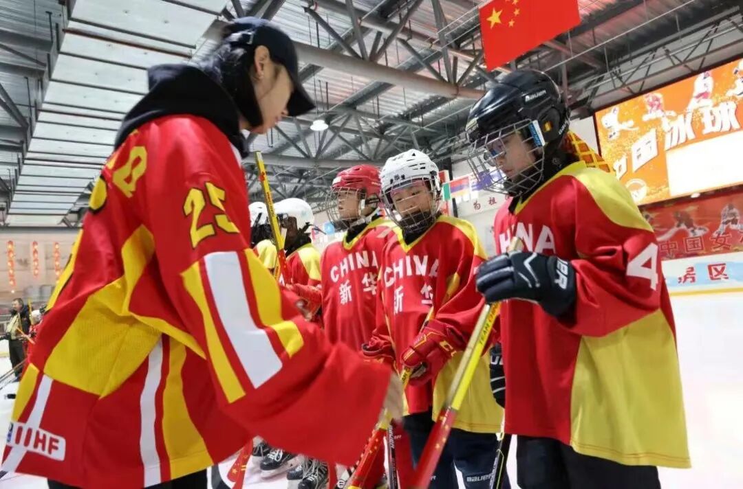 南城一小,原新华小学,这里曾走出2022年北京冬奥会中国女子冰球队的“三朵冰花”——方新、何欣和王雨晴。作为国内最早发展冰球运动的城市之一,哈尔滨在中国冰球运动发展过程中扮演着重要角色,而原新华小学因培养了多位冰球国手,被中国冰球协会授予“冰球摇篮”称号。近日,中国冰球协会带领中国女子冰球队13名队员向南城一小捐赠100支冰球杆。10岁的唐昕悦从身着中国国家女子冰球队队服的姐姐手中接过冰球杆,爱不释手。望着“两代人”,原新华小学校(现南城一小)原校长刘万富、教练王迺伟的脸上露出了幸福的微笑。“学校坚持以传承与发展冰球项目为办学特色,全力为国家冰球事业培养优秀运动员、教练员、裁判员及冰球项目管理人才。黑龙江省体工队女子冰球队、哈尔滨市体育运动学校冰球队,新华小学输送的学员占了‘半壁江山’。”刘万富自豪地说。