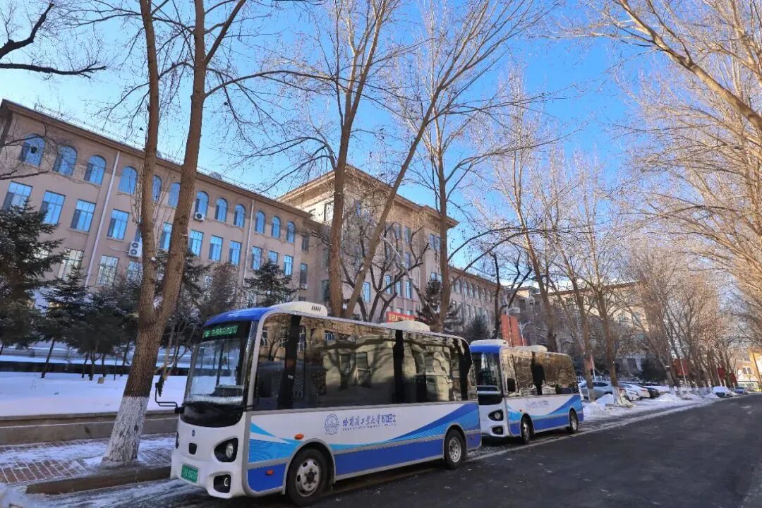 参观人员在校园内可乘坐校园小巴进行参观哦!