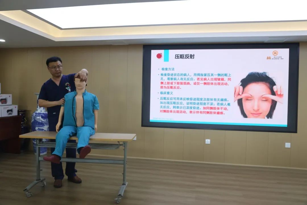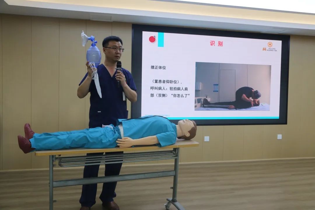 王宇新主任及丁锋医生为全院医务人员们讲解了常见急症的医疗急救操作要点,内容涵盖:心肺复苏技术、海姆立克急救法、常见急症及用药处置,针对急救操作技术和常见急症的处理方法,分门别类地进行了细致讲解,内容深入浅出,大家受益匪浅。