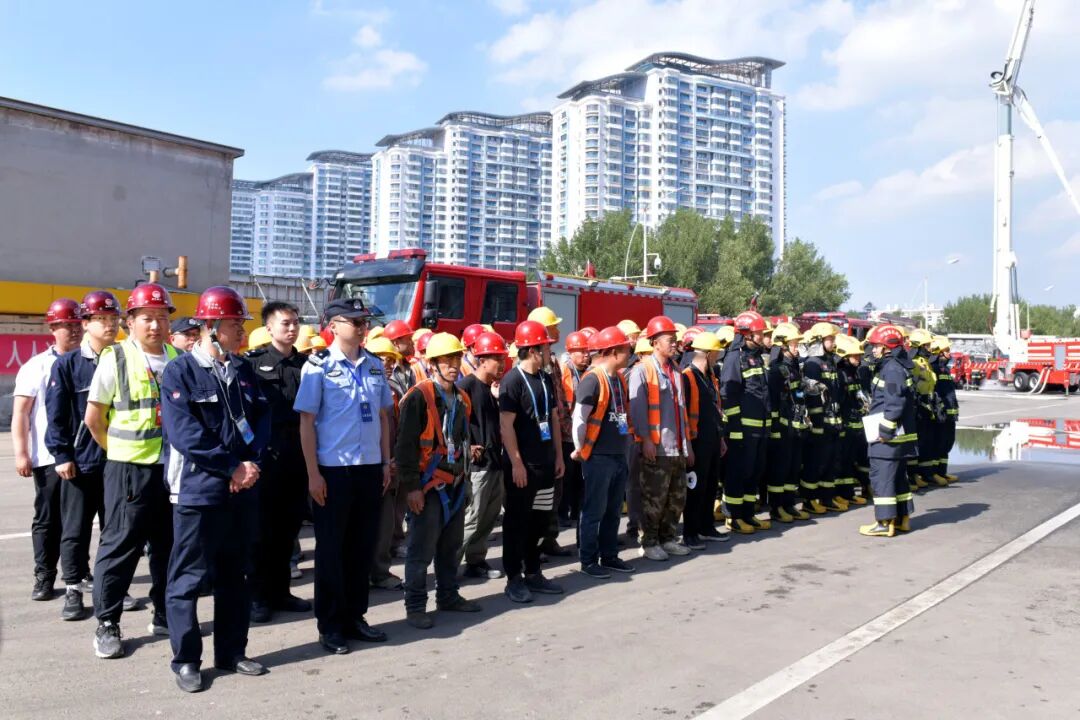 此次演练采取边演练、边检查、边规范的形式,先后开展了火情侦察、安全管控、初战控火、高喷车灭火、机器人内攻等6个演练科目。