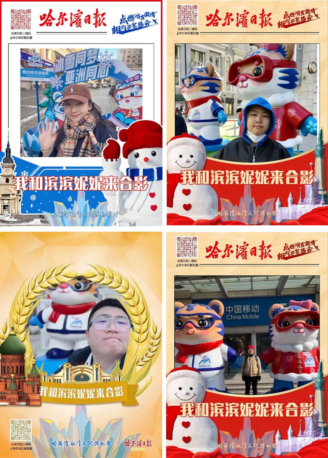 助力亚冬,快和滨滨妮妮来合影,邀您上传美照登哈报头版!