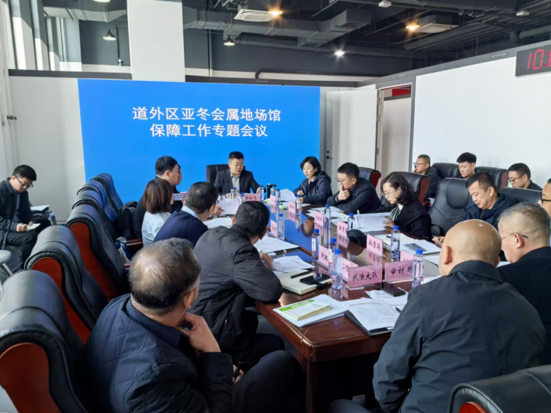 11月8日,道外区召开亚冬会属地场馆(哈尔滨冰球馆)保障工作专题会议,区委副书记、区长李晗龙主持会议并讲话。