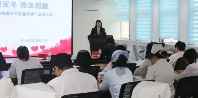 为充分做好2025年第九届亚冬会血液保障工作,更好地执行《2025年第九届亚冬会血液保障工作方案》,哈尔滨市血液中心于11月21日召开“亚冬会供血保障百日攻坚行动”启动大会,旨在提升团队的应急处置能力,发扬团结协作、无私奉献的精神,提高血液保障能力和服务水平,确保赛事的顺利进行。