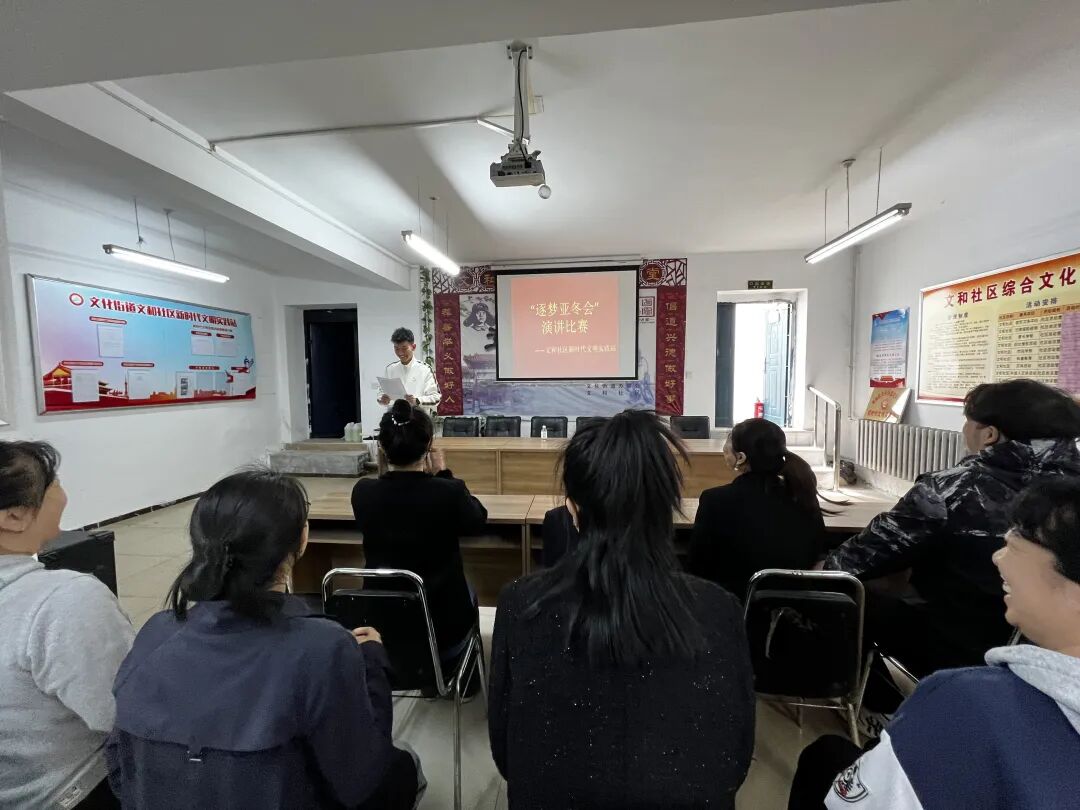 文化街道文和社区新时代文明实践站组织辖区居民围绕“逐梦亚冬会”主题开展了演讲比赛。活动中,选手们以慷慨激昂的气势和饱满的热情,用鲜活真实的事例、充满激情的语言,表达了对亚冬会的热切期盼和对美好生活的赞叹。演讲作品《冰雪颂》,视角独特,立意新颖,歌颂了运动健儿顽强进取,奋勇争先的拼搏精神,更是展现了中华儿女奋进新征程、建功新时代的信心和决心。本次活动的开展,充分展现出了辖区群众喜迎亚冬,积极向上的精神风貌,为亚冬会的召开营造了良好的氛围。