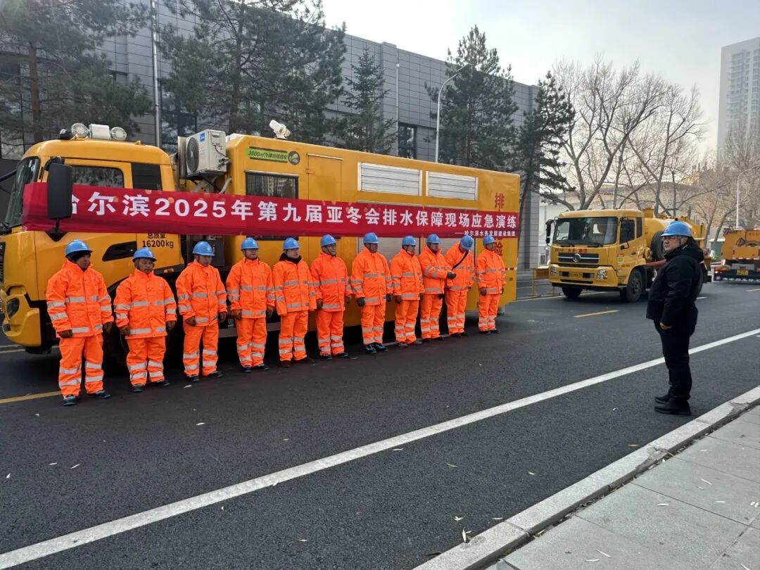 为全面落实亚冬会城市侧排水保障工作,近日,哈尔滨水务发展建设集团有限公司排水事业部在道外区八区街哈尔滨冰球馆前举办“哈尔滨2025年第九届亚冬会排水保障现场应急演练”活动。