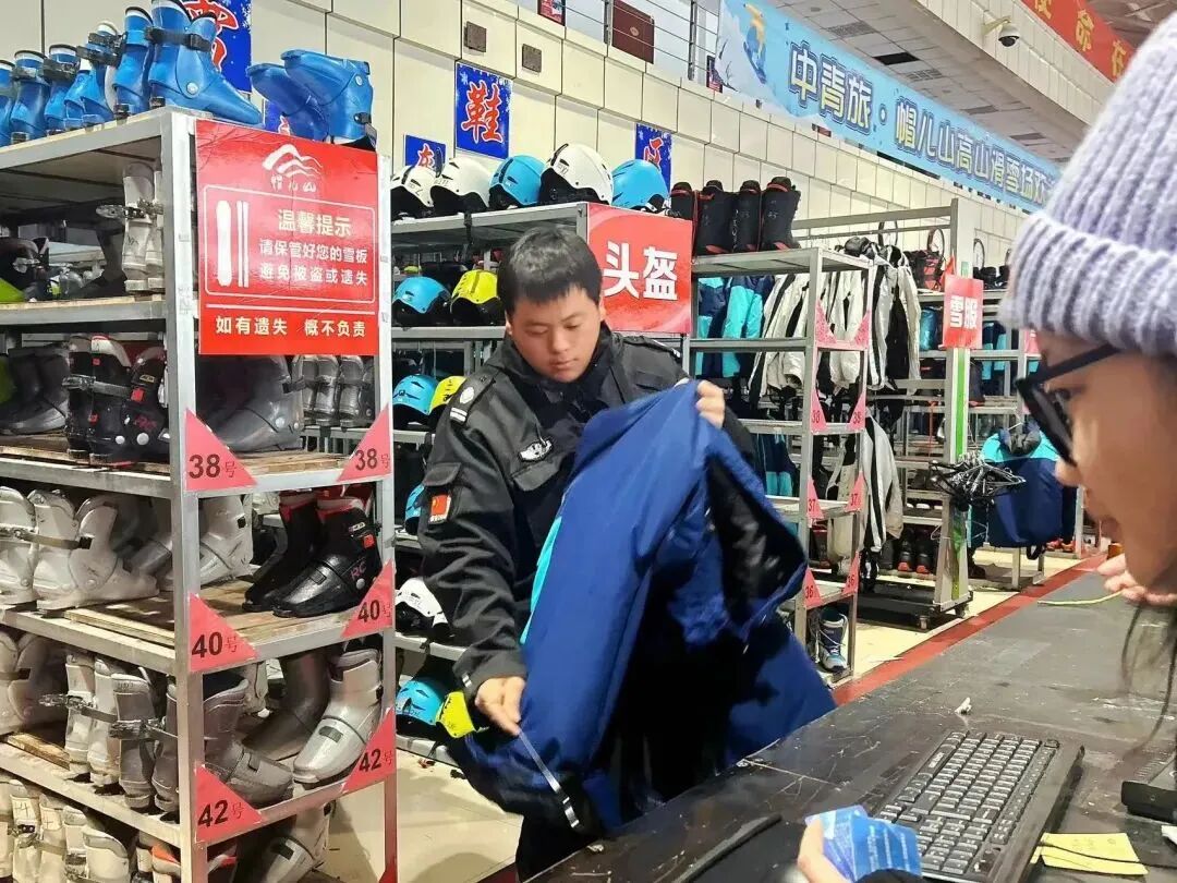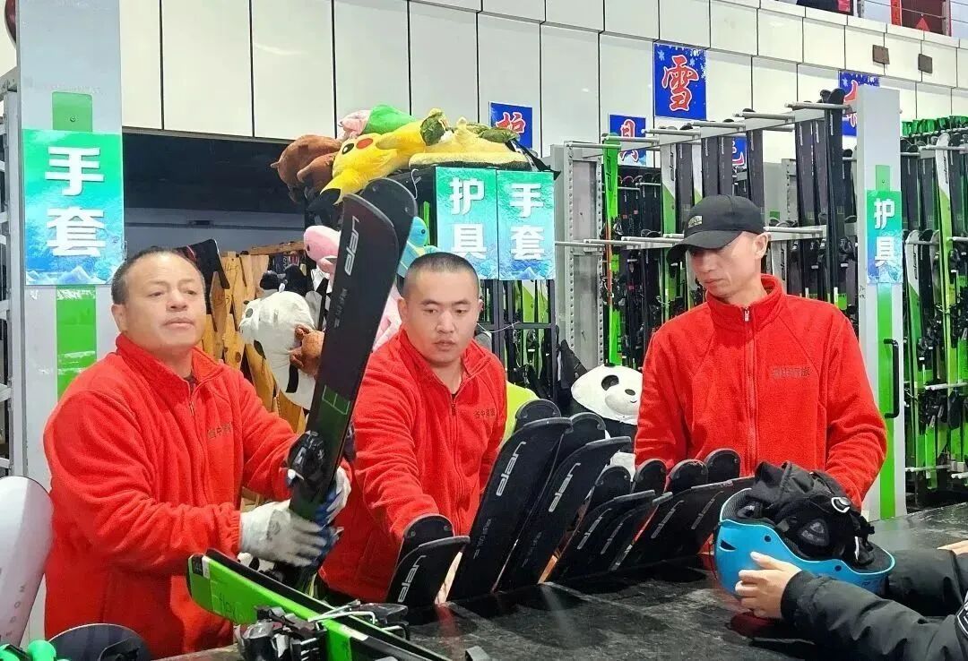 同时,滑雪场还提供头盔、雪服、雪镜、手套、护具等租赁和教练员预约服务。在更换完全部装备后,引导游客进入相应的雪道进行滑雪。在雪场入口,有义务讲解员,为游客讲解示范滑雪鞋、滑雪板穿戴,雪仗使用要领,安全注意事项等。