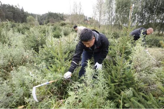 活动中,工作人员、志愿者两三人为一组,在专家和技术人员的演示指导下,手持镰刀等工具开展了森林抚育作业。大家都严格按照技术规程进行作业,清理现地中的枯枝灌木。