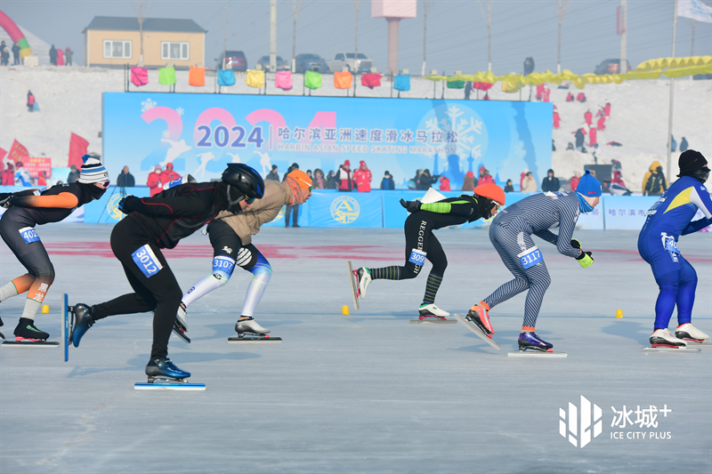 1月27日,2024年哈尔滨亚洲速度滑冰马拉松在亚洲最大的户外滑冰场——哈尔滨新区户外冰上运动中心开赛。来自亚洲各个国家和地区的1000多名速度滑冰爱好者齐聚冰城,展开了10个组别共20个项目的争夺。