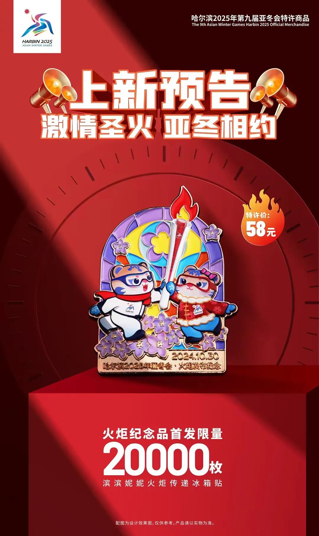 10月30日晚,2025年第九届亚冬会火炬形象正式发布,为了庆祝这一重要时刻,亚冬会特许商品特别推出了三款火炬系列限量版纪念品。三款纪念品首发各限量20000枚,今日上市销售!