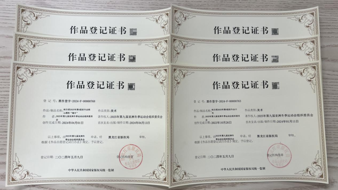 日前,亚冬会组委会已经为亚冬会口号、核心图形、体育图标等共6件美术作品办理了版权登记,目前已通过黑龙江省版权局审核,并获得了作品登记证书。以上美术作品受到《中华人民共和国著作权法》的保护,任何未经授权的使用或复制上述作品的行为,都将构成对亚冬会组委会合法权益的侵犯,并可能承担相应的法律责任。