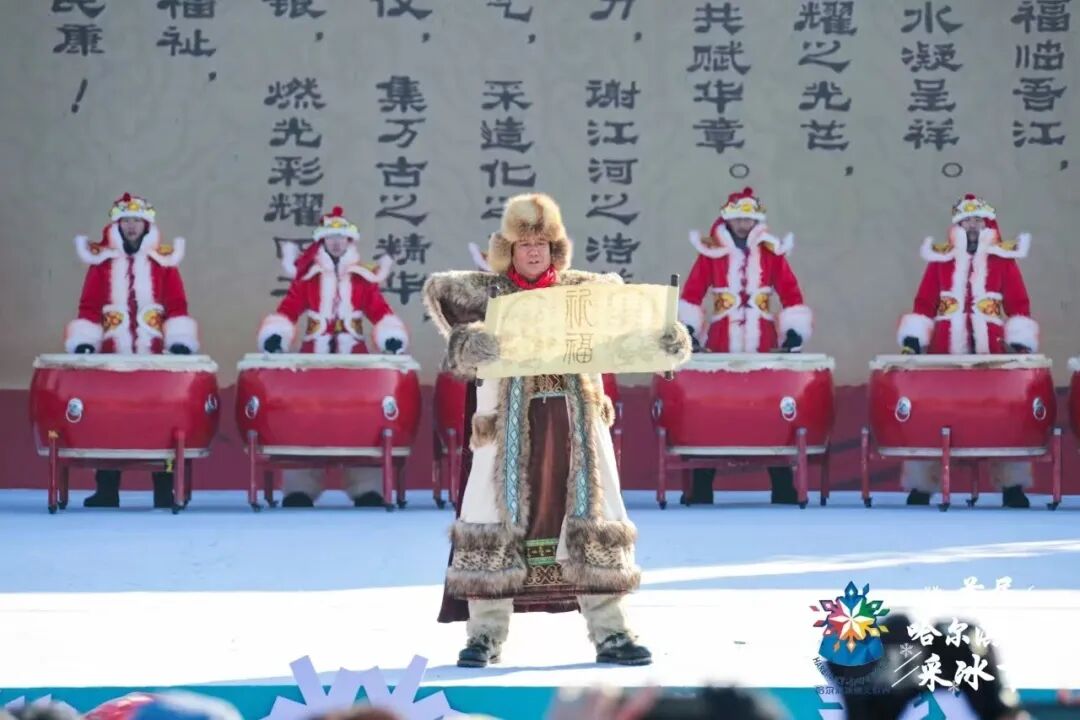 本届采冰节特别邀请到从哈尔滨走出的音乐唱作组合“安与骑兵”,对传统采冰号子进行全新演绎。伴随着猎猎招展的迎风旗、气动山河的震天鼓,“冰把头”登场宣读祈福词,身着传统服饰的采冰汉子齐饮出征酒。