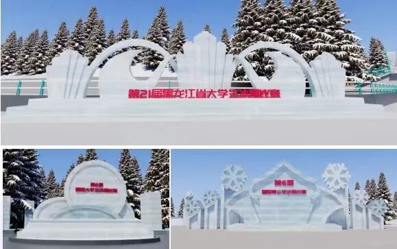 喜迎亚冬区。在尚志大街入口处拟建冰景《奥运冠军之城》,此冰景是以老哈站建筑造型为背景,速滑、单板、冰球、滑雪等冬季运动健将组合的冰雕景观。在西山脚下河内处拟建设一处奥运冰场,冰面下拟铺设LED灯光展现奥运五环造型。在尚志大街入口处拟建冰景《冰雕长廊》。在友谊路入口处拟建《幸福城堡》,以东欧建筑为背景的一对天鹅展现出心心相印造型,融合浪漫与文艺气息,打造网红打卡景观。